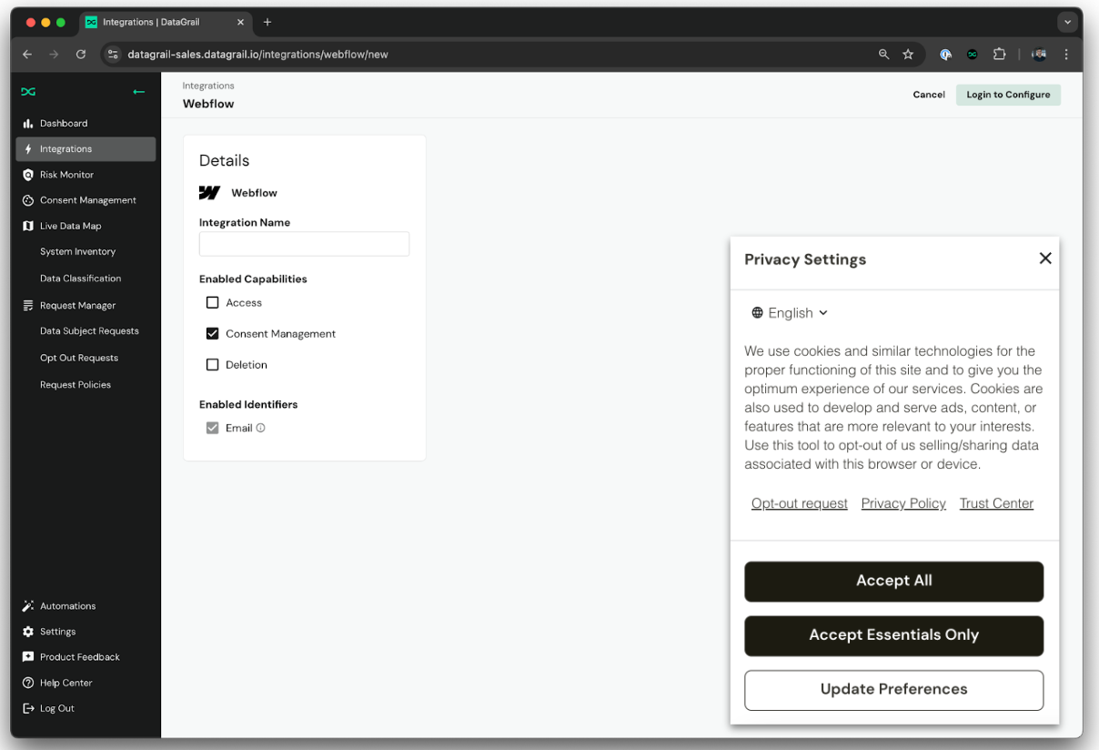 With DataGrail Consent, Webflow customers can: